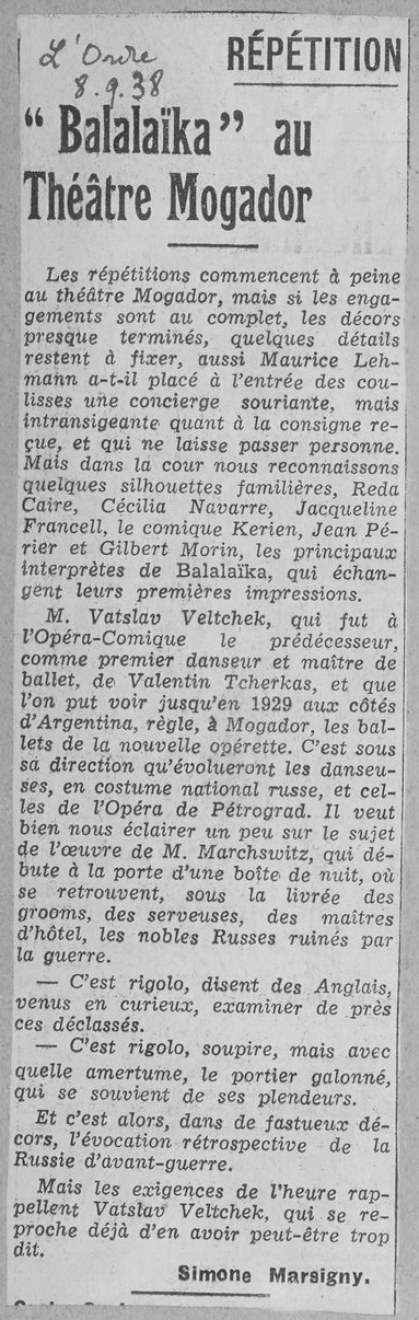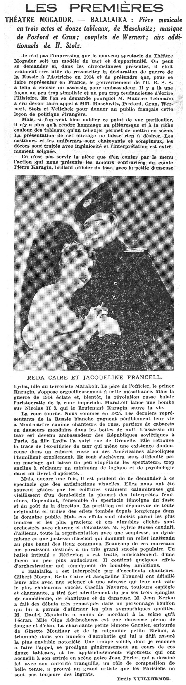 | Extr. de : Programme original anglais de "Balalaika" (His Majesty's, 1936) |