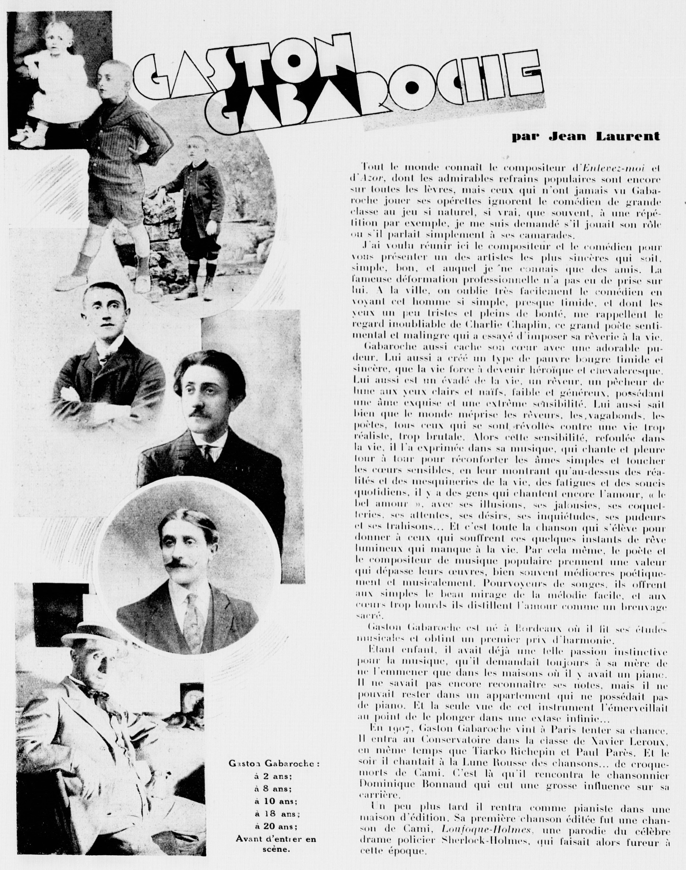 Gaston Gabaroche. Article par Jean Laurent. |