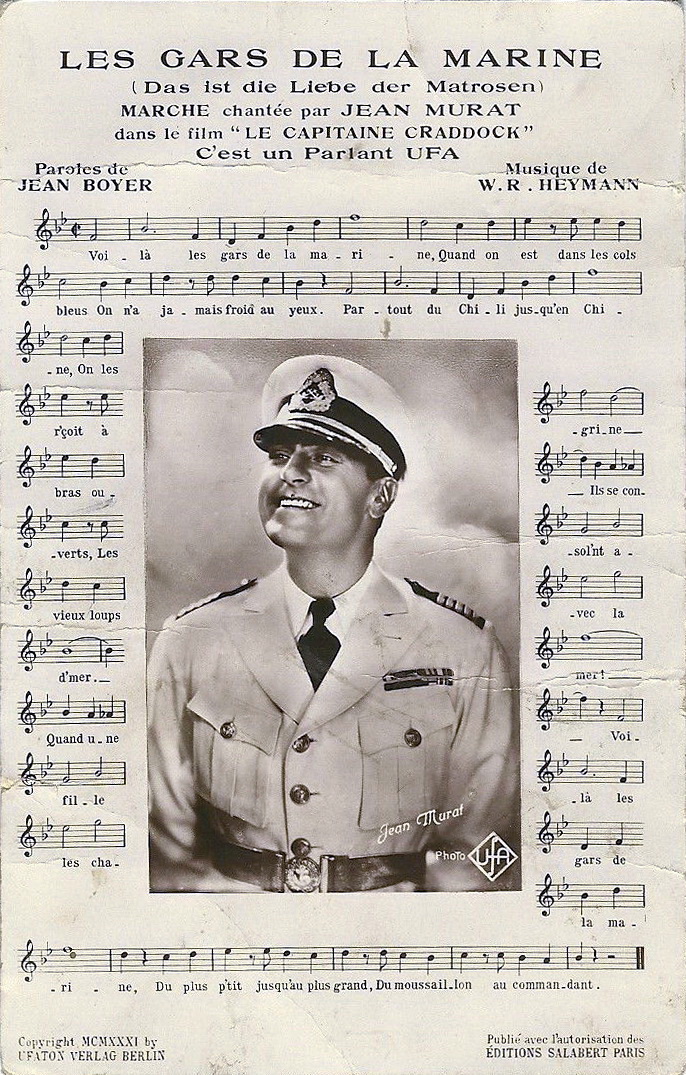 Jean Murat sur une partition du film "Capitaine Craddock", carte postale publicitaire