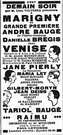"Venise", intitulée initialement "Les amants de Venise" aurait du être montée à l'Opéra Comique début 1924. Le livret était initialement de Rosemonde Gérard, qui disparut lors des remaniements pour Marigny. "Venise" a été reprise en mai 1989 à Rochefort.