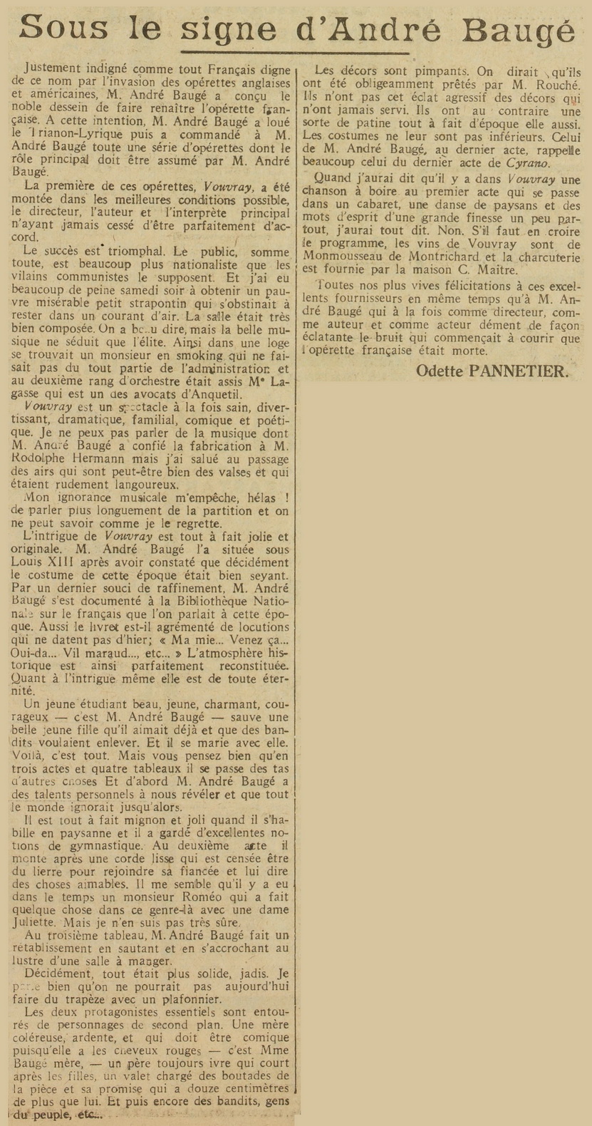 Au château de Ryssac, où Jacqueline, du haut de sa tour, déverse des cantilènes sur les rhumatismes d’un vieux jardinier — elle s’amuse comme elle peut, cette petite ! — Vouvray se fait engager comme « bonne à tout faire » par le baron de Ryssac, gentilhomme alcoolique et grand trousseur de cotillons, sauf celui de son épouse, ce qui désespère l’honneste dame.
